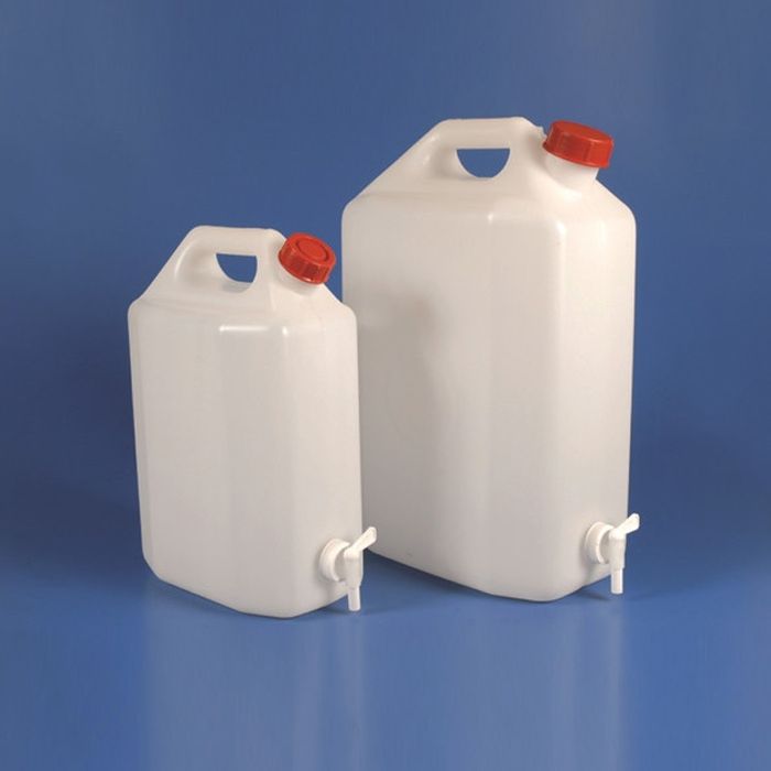 These two products, with size 10 litres and 20 litres, are specifically designed to rationalize laboratory and small production line organization, giving the opportunity to optimize water, aqueous solutions and solvents availability in reduced space. They are made of High Density PE food grade, with a comfortable handle for displacement. The spigot is placed in a position allowing the tank to stand, as to facilitate the use of these tanks in packaging and transporting liquids.