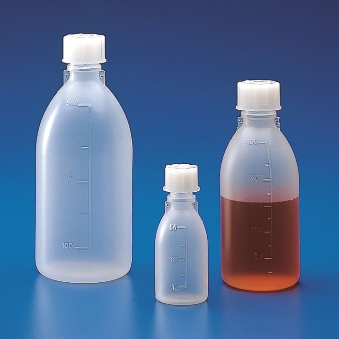 Autoclavable, graduated, heavy walled bottle. Ideal for transporting toxic waste waters, boiler feed water ect., back to laboratory for analysis as samples can be secured using shoulder and cap tag to avoid sample contamination in transit. Conforms to DIN 13316 and 168. Remove cap before autoclaving.