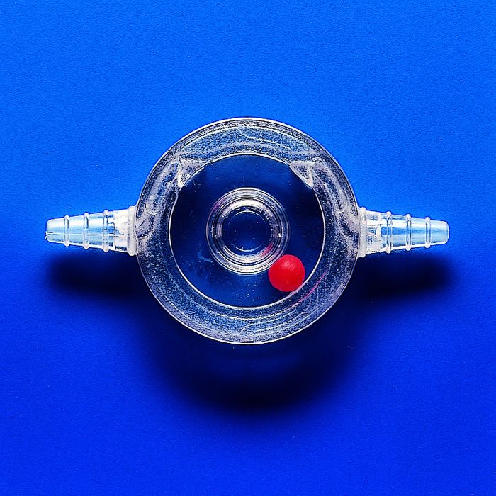 For liquid flow from 50 ml/min. in horizontal position and 140 ml/min. in vertical position. Minimum air flow 3 litres/min. horizontal and 8 litres/min. vertical. Speed of rotation of ball proportional to flow. Not to be used with corrosive fluids or over + 50⁰C.