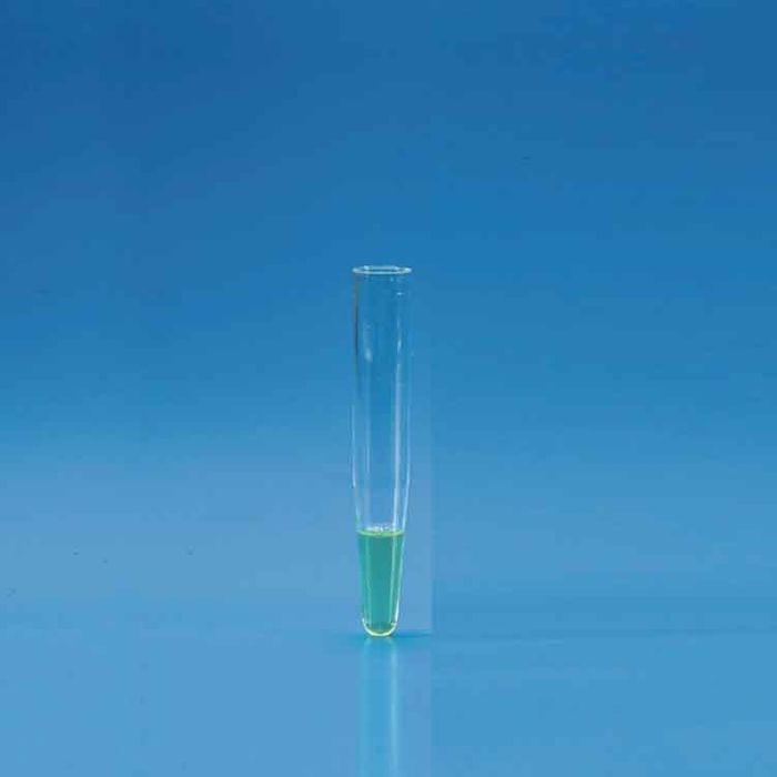 Disposable round or conical bottom conical type tubes with no rim, for laboratory use. Made of PS. Can be used in centrifuge. This tube is supplied in packs of 1,000.