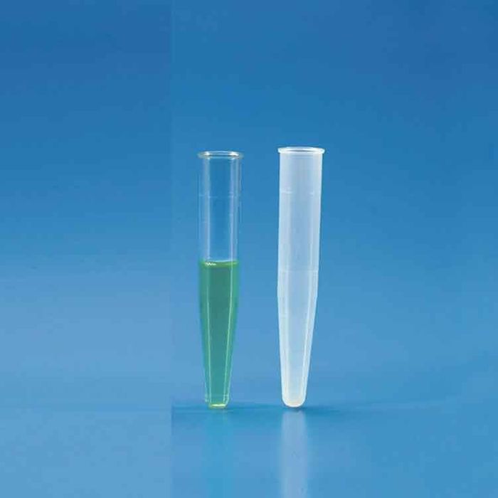 Disposable tubes with a conical bottom and rim, for laboratory use. Made of PP. Can be used in centrifuge. Comes in packs of 2,000.