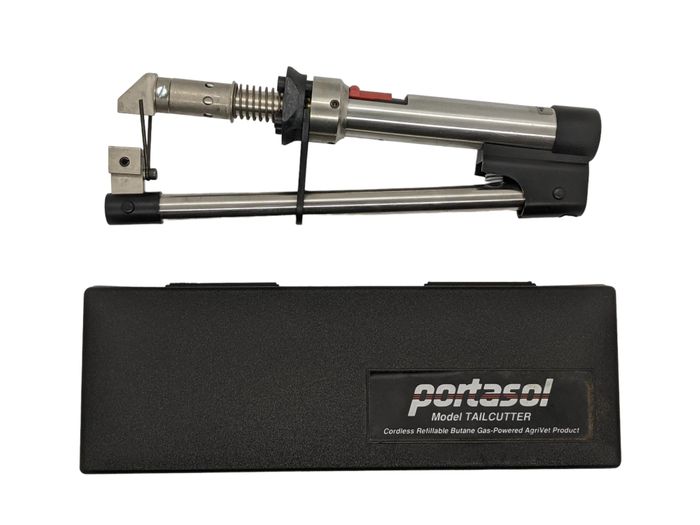 This butane gas powered device is designed to quickly and efficiently perform tail docking on piglets. The device is supplied in a compact and portable carry case.